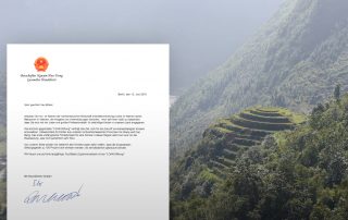 Một lá thư từ Đại sứ Nguyễn Hữu Tráng khẳng định những gì chúng ta đang đứng cho: Tất cả các đóng góp được 1-1 nơi họ cũng được cung cấp.